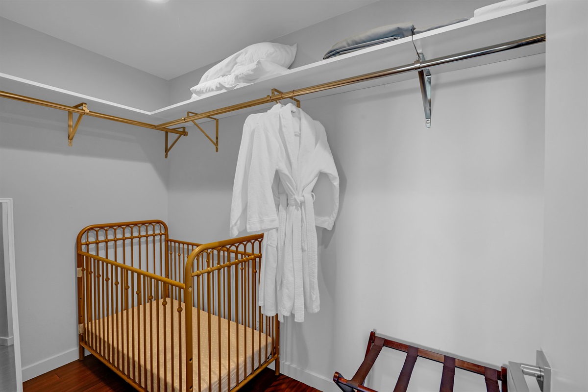 ✔ Baby-Friendly: Crib, high chair, baby bath, and more.