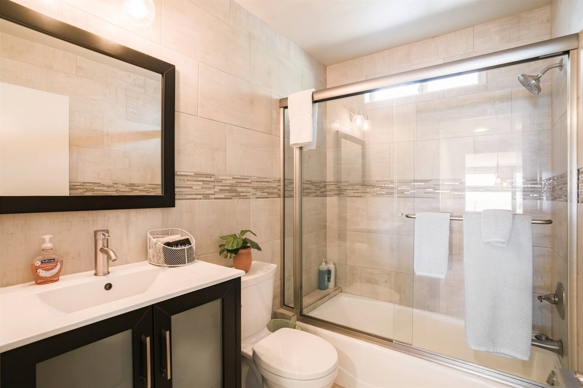 Queen Bedroom: Adjacent to a full bathroom.