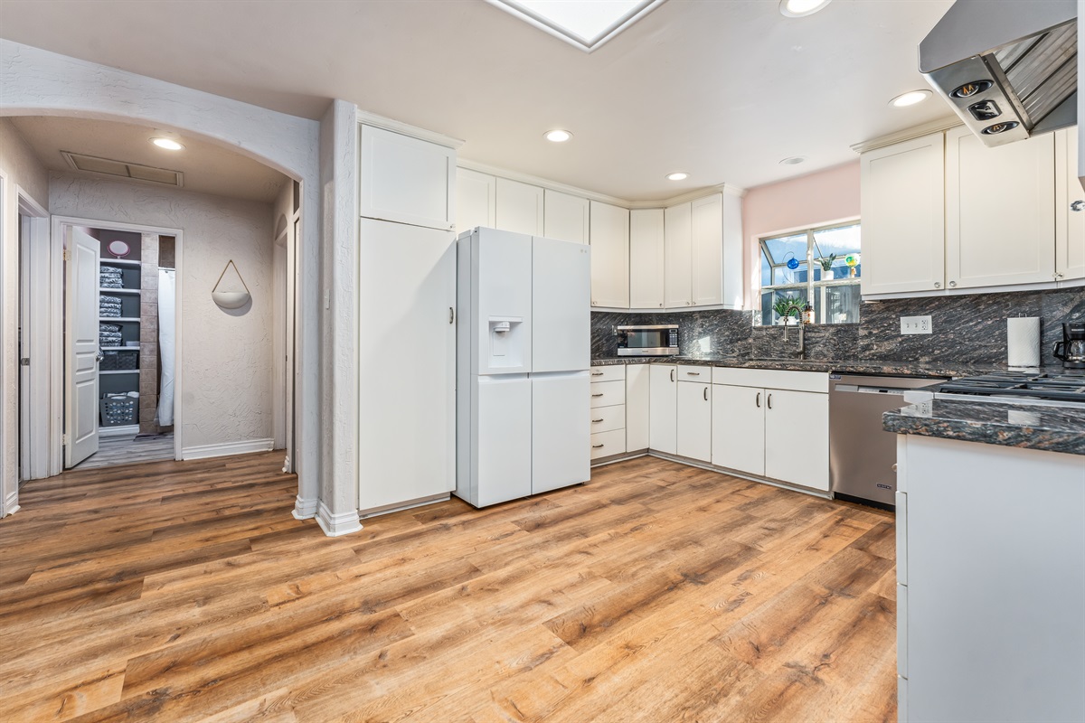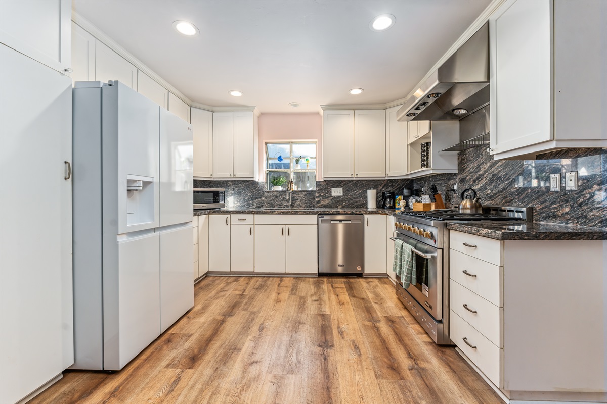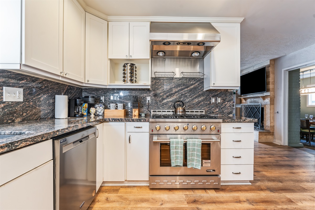 Our open-concept floor plan is perfect for entertaining: The fully furnished kitchen features modern stainless steel appliances and granite countertops, making meal prep a breeze.