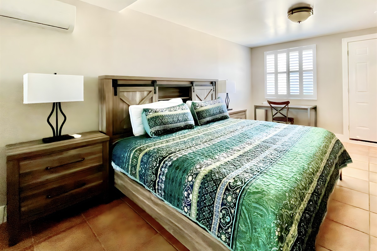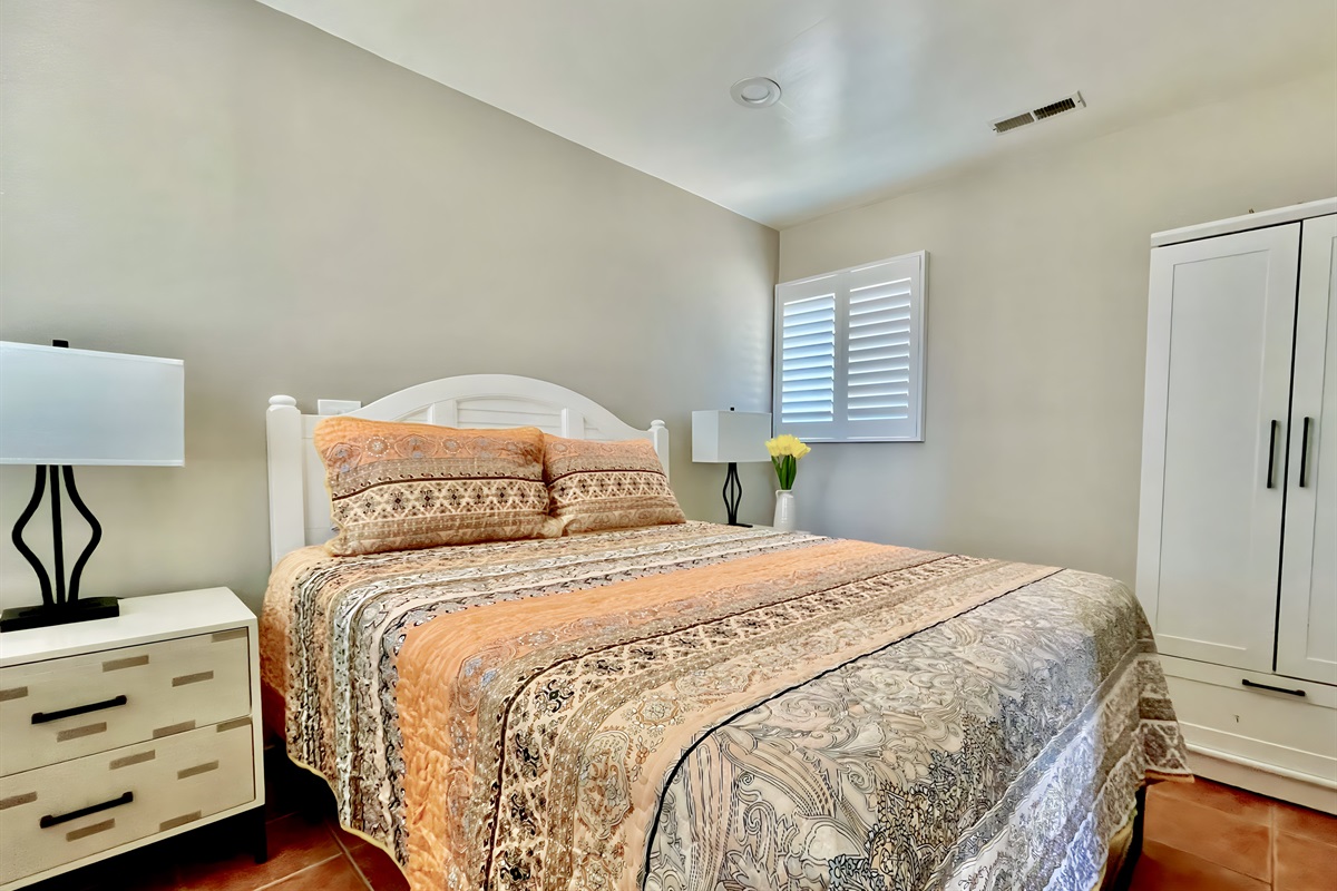 The Queen bedroom is also private and at the other side of the house. It has a small wardrobe closet and Smart TV.