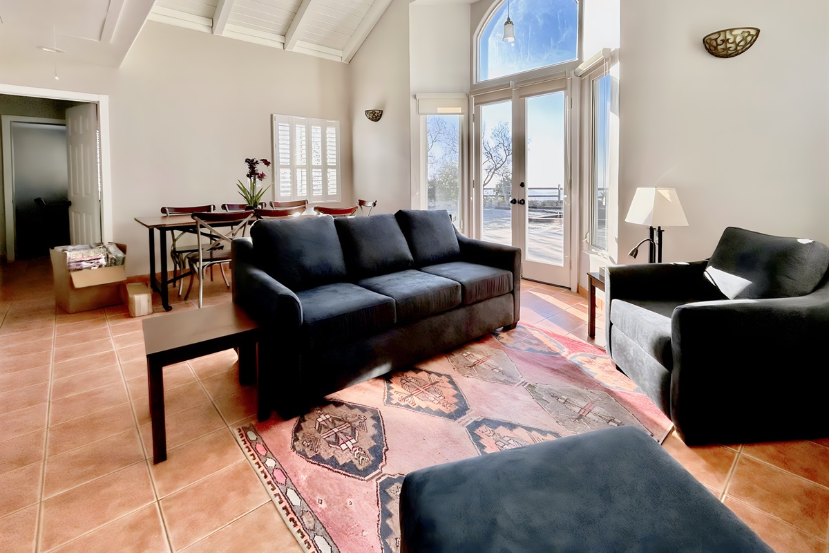 There are double doors that lead to the back patio where you will have your amazing view of Boney Mountain. We have built a gas fire pit with chairs as well as outdoor seating and gas BBQ.