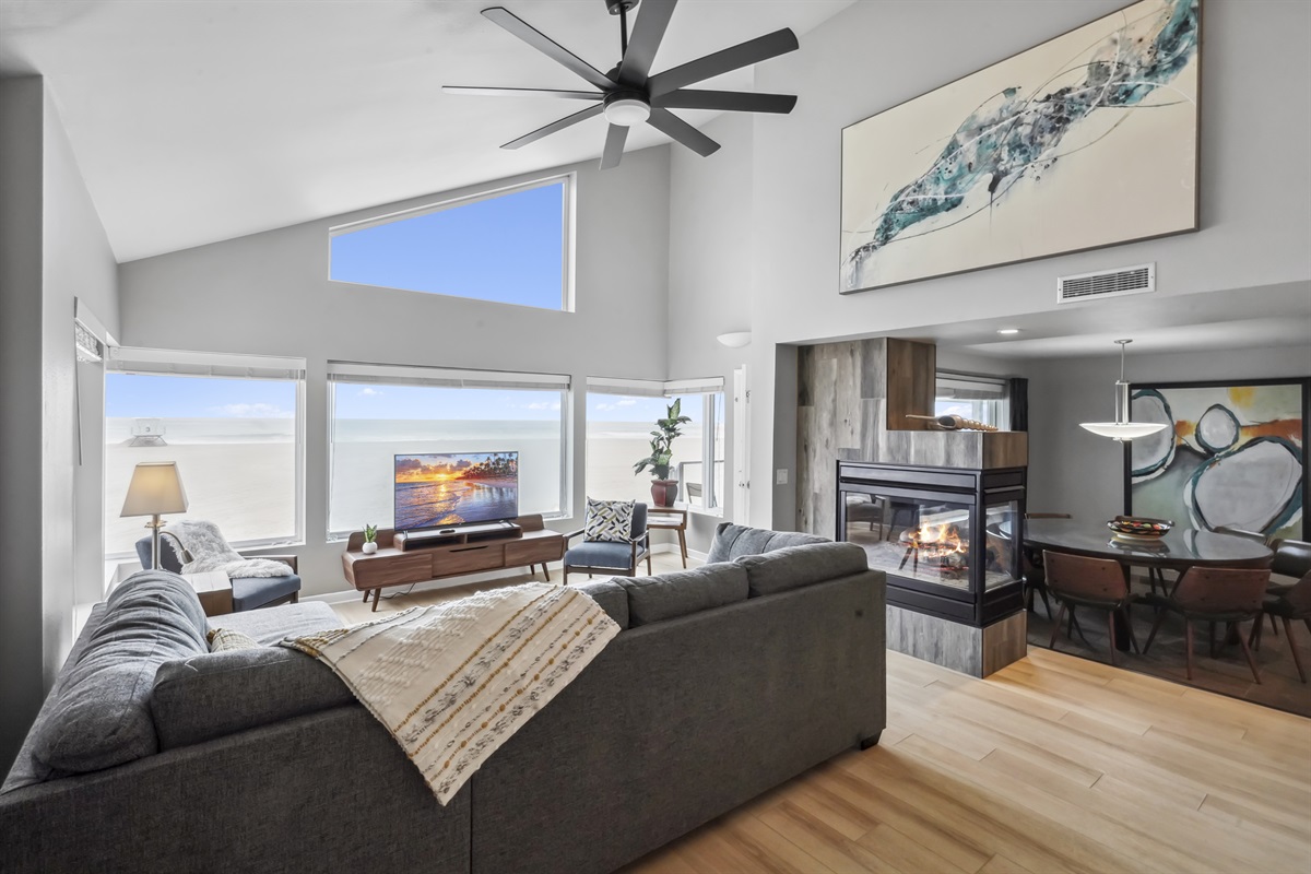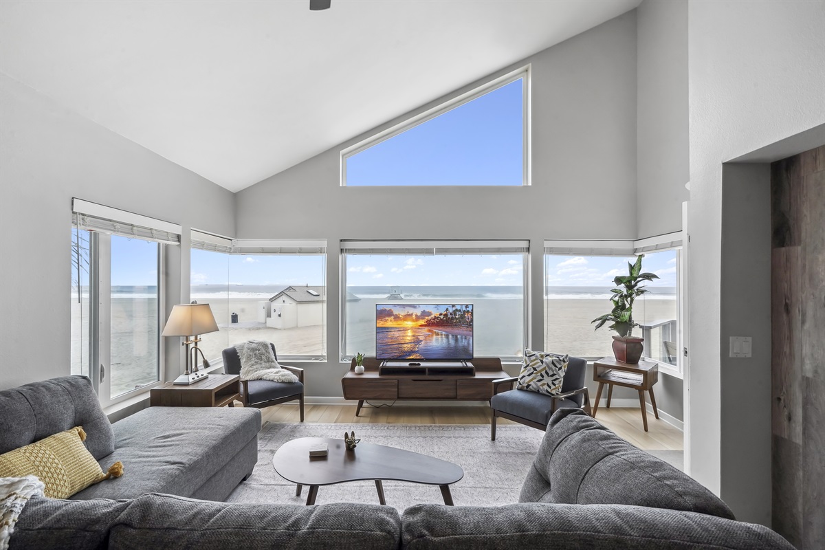 This sunlit, oceanfront home is designed for comfort, connection, and effortless beach living. The main living level features a plush sectional, Smart TV, and sweeping ocean views that flow naturally into the dining area and fully stocked kitchen. With space to gather and quiet corners to retreat, the layout works beautifully for larger groups.