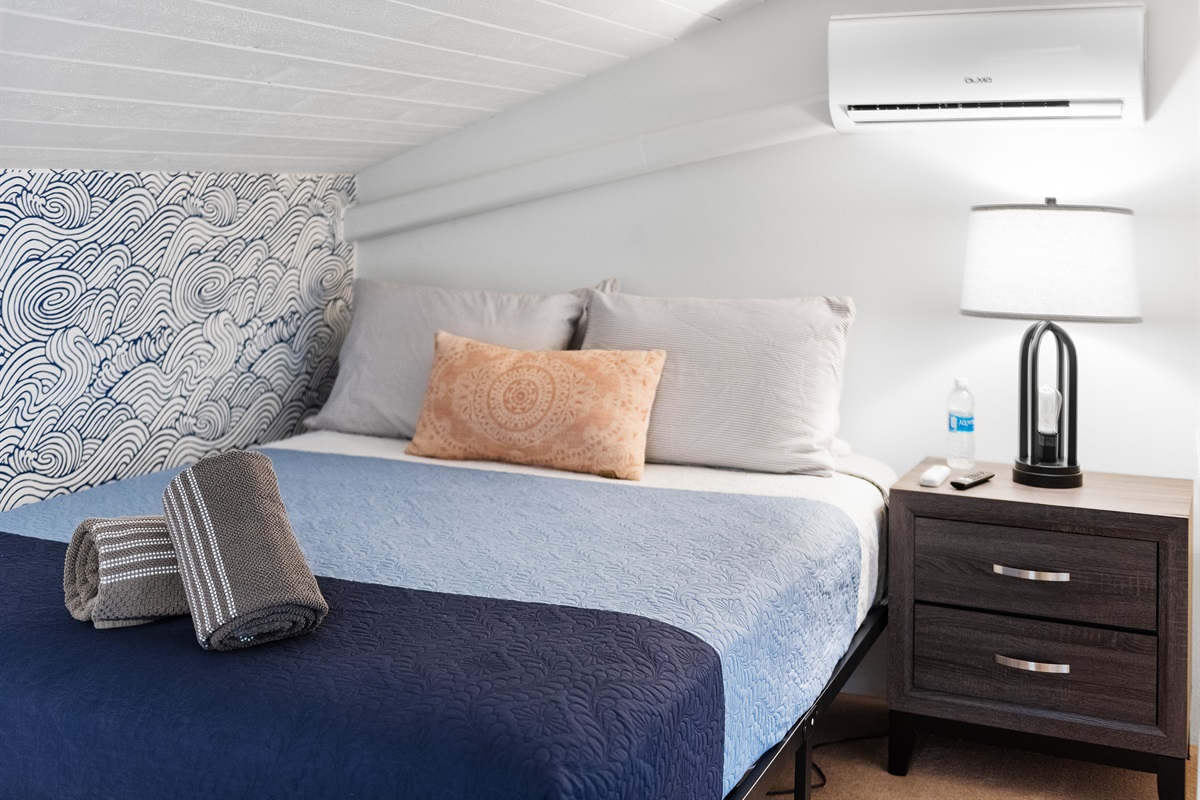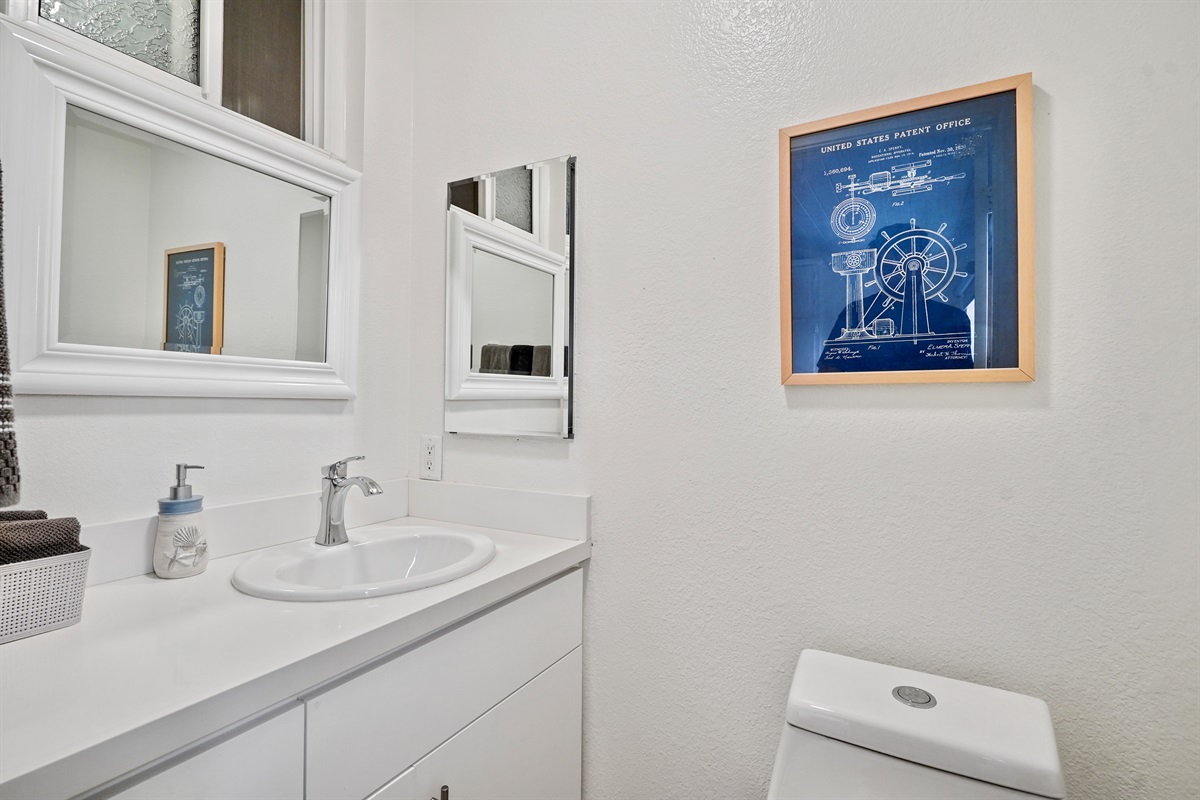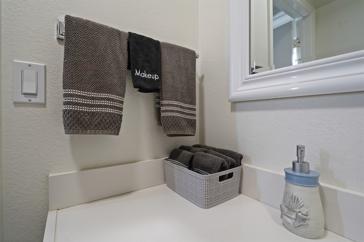 Bathrooms are stocked with shampoo, conditioner, body wash, plush towels, and a hairdryer. An outdoor shower is also available for rinsing off after the beach.